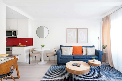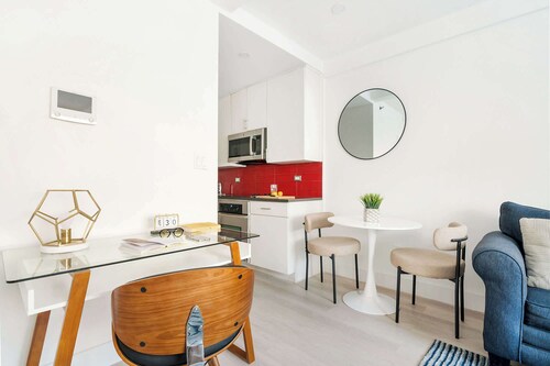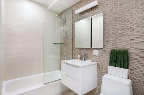 マンハッタンに位置するこのアパートメントは、ブロードウェー、セントラル パーク、ブロードウェイ シアターから徒歩 10 分圏内です。コロンバス サークルおよびカーネギー ホールも 10 分圏内です。地下鉄 59 ストリート - コロンバスサークル駅まで徒歩 6 分、地下鉄 7 アベニュー駅 (イースト 53rd ストリート)まで徒歩 7 分です。 この禁煙のアパートメントには、ランドリー設備があります。 アパートメントでは、冷蔵庫とオーブン、コンロ、電子レンジが備わったキッチンをご利用いただけます。便利な洗濯機、コーヒー / ティー メーカーのほか、食器洗い機、テレビもご利用いただけます。