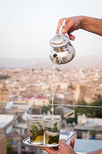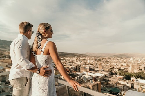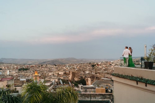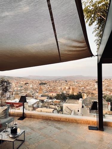 屋上のテラスからの景色は必見。家々がひしめきあうメディナを一望できるし、朝日も最高。