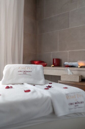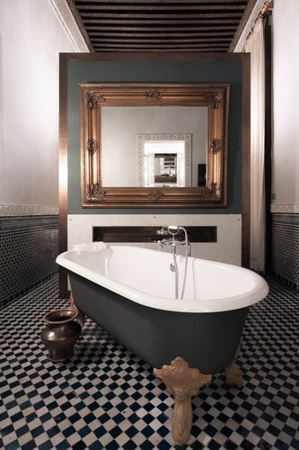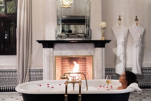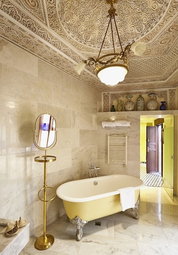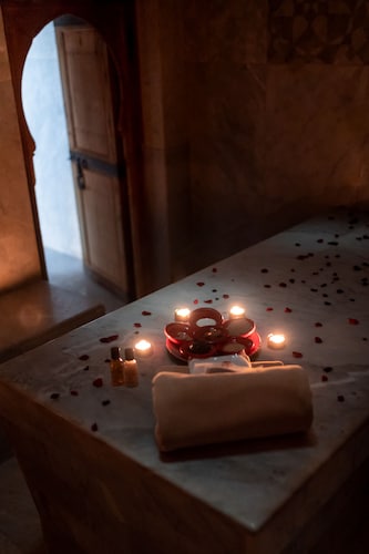 バスタブがついたお部屋もあります。金額は張りますが、1泊ではもったいないリアド。ハマムもあり、ベーシックなプランで350DHから楽しめます。1日中メディナを歩いて疲れた体を癒すのもいいですね。