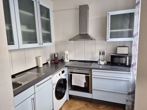 ミュンヘン シティ センターに位置するこのアパートメントは、ジャーマン シアター、テレジエンヴィーゼ、マリエン広場から徒歩 15 分圏内です。ヴィクトゥアリエン マルクトおよびホフブロイハウスも 2 km 圏内です。ミュンヘン中央駅トラム停留所と地下鉄 セントラル駅が徒歩 5 分圏内にあります。 このアパートメントには、ランドリー設備があります。 アパートメントでは、冷蔵庫とオーブン、コンロ、電子レンジが備わったキッチンをご利用いただけます。便利な洗濯機、ソファー ベッドのほか、WiFi (無料)、スマートテレビもご利用いただけます。