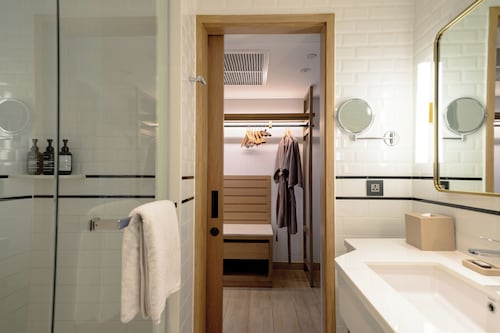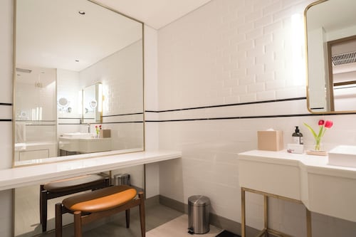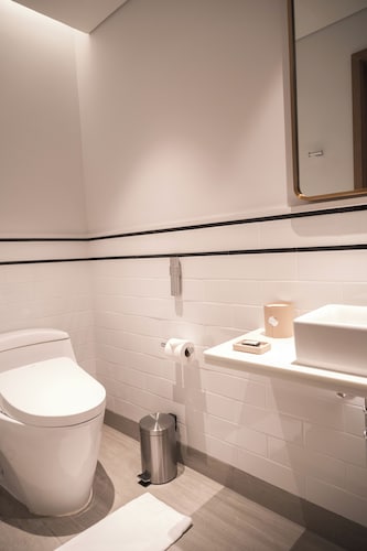 バスルームには全室バスタブ完備。中級レベルの割には少々狭いのが気になるかも。