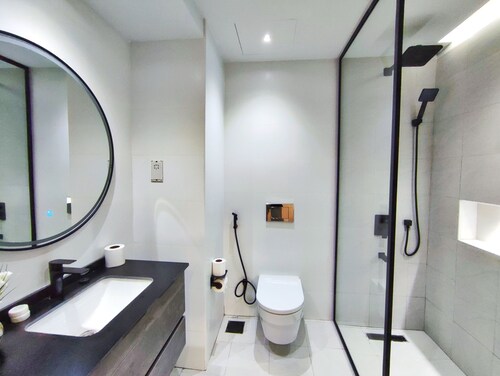 ダウンタウン ドバイに位置するこのアパートメントは、キッザニア、ドバイ モール、ドバイ ファウンテンから徒歩 15 分圏内です。ブルジュ ハリファ (超高層ビル)およびドバイ世界貿易センターも 5 km 圏内です。ドバイトロリー駅1トラム駅まで徒歩 7 分、ドバイトロリー駅2トラム駅まで徒歩 11 分です。 この禁煙のアパートメントには、屋外プール、フィットネスセンター、および24 時間対応フロントデスクがあります。共用エリアでの WiFi (無料)および セルフパーキング (無料)もご利用いただけます。 アパートメントでは、ダイニング スペース、応接スペースに加えて、バルコニー、衛星放送付き薄型テレビをご利用いただけます。そのほか、冷蔵庫、電子レンジ、ボトルウォーター (無料)などの設備とサービスもご利用いただけます。