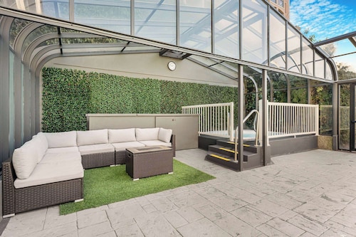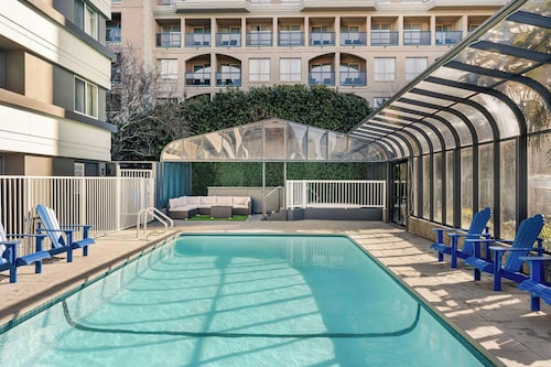 ロビーの奥に温水プールがあります
