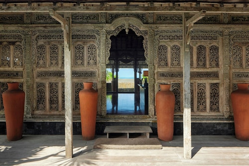 高い塀に囲まれたヴィラに足を踏み入れると、目の前にインド洋の絶景が。専用プールとオープンエアのリビング、ゆったり落ち着いた寝室と独立したバスルーム。特に大理石の床の大きなバスルームは印象的です。バス・アメニティもブルガリブランド。オ・パフメ オーテヴェールは緑茶にフォーカスした爽やかな香りです。バスタイムも長くなりそう。