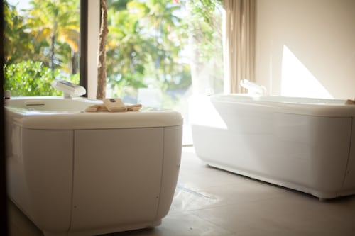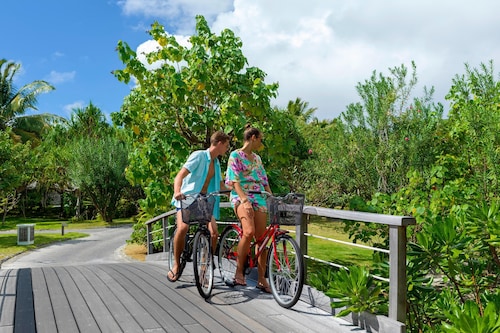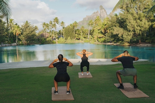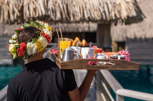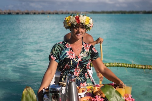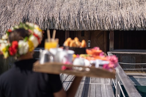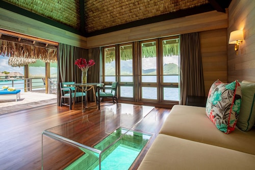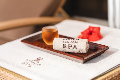 ボラボラ島を代表するラグジュアリーリゾートの一つセントレジスボラボラ。 世界の著名人やハリウッドセレブも訪れる事でも有名なホテルです。 ボラボラ島のリゾートホテルの中では一番敷地が広く、施設一つ一つがゆったりとしており、インテリアにもセンスが光ります。 さらにリゾート内ではバトラーが滞在中の困った時のいろいろに対応してくれるので安心です! レストランはいくつもあり、バリエーション豊富。フレンチ、イタリアン、和食、ポリネシアン料理などをお楽しみ頂けます。 中でも私がオススメしたいのはラグーン(フレンチ)レストランです。 水上に建てられているとってもロマンチックなレストランなんです! ディナーのみの営業ですが、床はガラス床でライトアップされていて、レストラン内は温かな照明に包まれます。 ムード、お料理、サービスに満足のレストランです。 そしてスパ施設も充実! ミリミリスパはトリートメントがとても種類豊富で、サウナやスチームルーム、リラクゼー