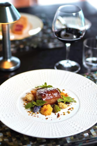 ディナーのみの営業ですが、床はガラス床でライトアップされていて、レストラン内は温かな照明に包まれます。
