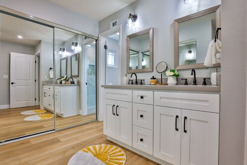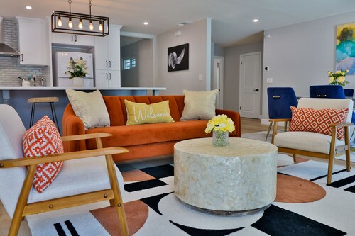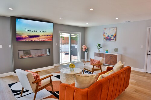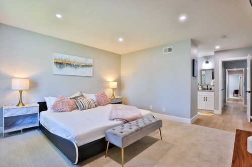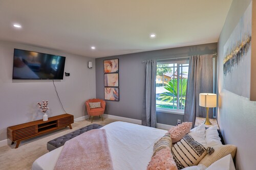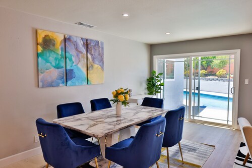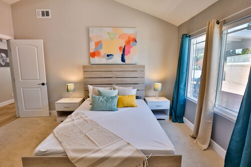 サウスイースト アナハイムに位置するこのバケーションホームは、キャメロット・ゴルフランドから 3.3 km、ホンダセンターから 4 km です。カイザーファンデーション病院 - オレンジカウンティ - アナハイムおよびアナハイムパッキング地区も 5 km 圏内です。 屋外プールのほか、この禁煙のバケーションホームにはランドリー設備および庭園があります。 バケーションホームには、ベッドルーム 4 室、WiFi、フェンス付きのプライベートヤードが備わっています。キッチンには冷蔵庫とオーブンが備わっており、優雅な滞在をお約束するプライベートプール、暖炉もご利用いただけます。