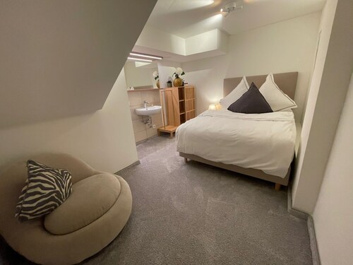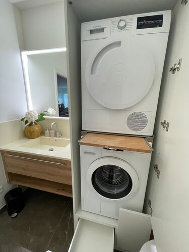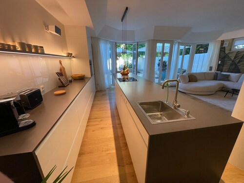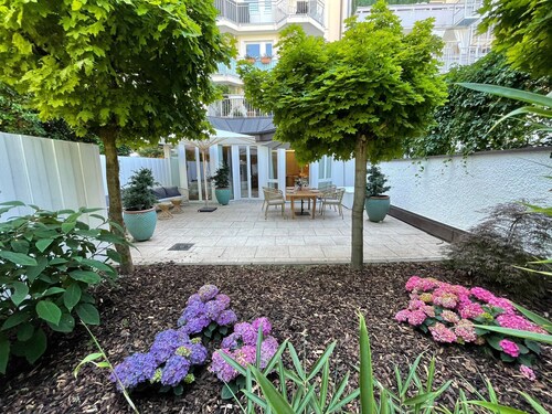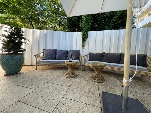 シュヴァビングに位置するこのアパートメントは、レオポルド通りおよび英国庭園から徒歩 15 分圏内です。オリンピック公園およびBMW ワールドも 3 km 圏内です。ポツダム通りトラム停留所まで徒歩わずか 2 分、地下鉄 ディートリンデンシュトラーセ駅まで徒歩 4 分です。 サウナおよびランドリー設備がある禁煙のアパートメントです。 アパートメントには、ベッドルーム 2 室、WiFi (無料)、フェンス付きのプライベートヤードが備わっています。キッチンには、冷蔵庫、オーブン、コンロ、食器洗い機が備わっています。