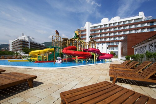 ガレンジクにあるファミリー向けのこのホテルは、ウォーターフロントに位置し、サファリ パーク、ゲレンジーク歴史博物館、シンギング ファウンテンから 2 km 圏内です。ゲレンジーク シティー ホールおよびオリムプ公園も 3 km 圏内です。 アレアン ファミリー リゾート & スパ ビアリッツでは、プライベートビーチで日差しを浴びたり、ホテルにある 4 つの屋外プールでリラックスしたり、フルサービス スパでゆったりくつろいだりして一日を過ごせます。 この客室の 330 室ある防音仕様の客室にはWiFi (無料)およびバルコニーが備わっています。エンターテインメント設備として、テレビ (デジタル放送付き) が備わっているほか、快適な滞在を約束するバスローブおよびスリッパもご利用いただけます。
