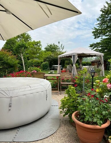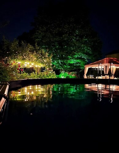 スパ用浴槽、庭園、およびバーベキューグリルがある禁煙のバケーションホームです。 バケーションホームには、ベッドルーム 4 室、WiFi (無料)、DVD プレーヤーが備わっています。プライベートプールをご利用いただけるほか、冷蔵庫とオーブン付きのキッチンも備わっています。