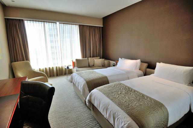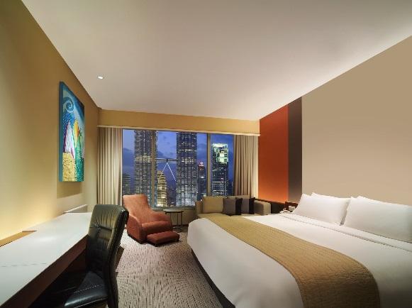 ご夫婦・親子(母娘)・カップル・女子旅にお勧めのホテルです。ツインタワーを正面から眺められる景色が、何よりのご褒美となることでしょう。客室は、モダンな雰囲気の内装となっており、デラックスルームは、32㎡。お部屋はツインベッドタイプとキングサイズベッドタイプとございます。ツインタワールームにアップグレードして、客室から朝晩のタワーの景色を楽しんだり、クラブルームで、クラブラウンジを利用するのも人気です。Wifiは、無料となります。また、全室バスタブ付きです。スイートルームのアメニティは、ロクシタンになってます。景色も楽しみながら24時間利用できるジムや、サウナ、スチームバスを備えたスパ、プールもあります。ペトロナスツインタワーまで徒歩圏内ですが、バギーのサービスがあります。ホテル内にあるスカイバーは、ガイドブックに載るほど有名で、ペトロナスツインタワーの夜景を眺めながら、音楽と共にお酒が飲めます。週末は特に混みあいます。タワーの見える窓際のソファー席は、事前予約がベターです。