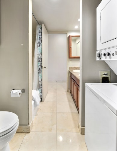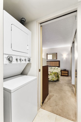 部屋に掃除機も大型の洗濯機と乾燥機もあるので自分達で掃除もシーツも洗えば良いのですが、ハワイ観光を楽しみたい方にはマイナスポイントかもしれません。