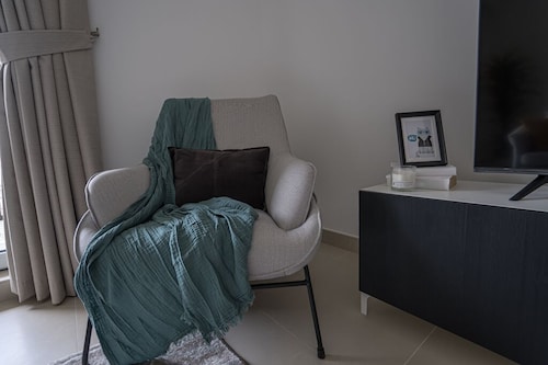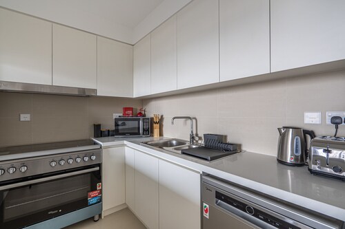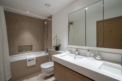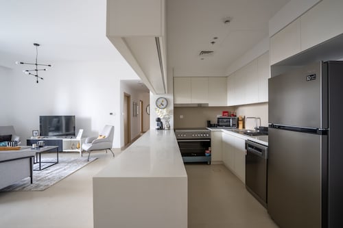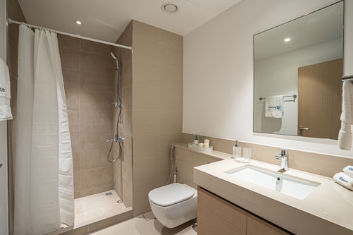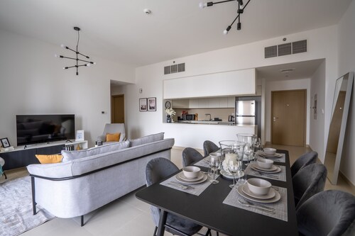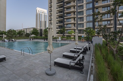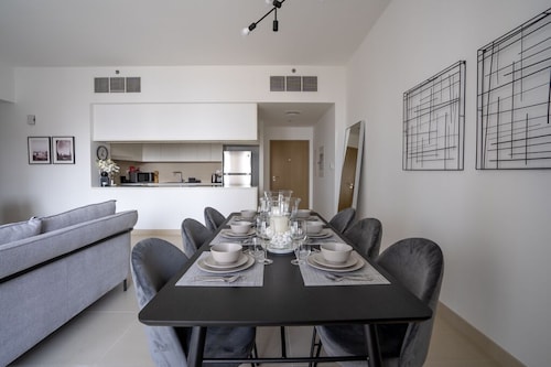 ドバイクリークハーバーに位置するこのアパートメントは、ドバイ クリーク (運河)から 3.4 km、ドバイ フェスティバル シティ モールから 3.7 km です。ドバイ モールおよびドバイ世界貿易センターも 15 km 圏内です。 禁煙のこのアパートメントでは、駐車場およびエレベーターをご利用いただけます。 アパートメントでは、プライベートプールのほかに、キッチン、洗濯機もご利用いただけます。便利な3.5 室のバスルーム、電子レンジのほか、バルコニー、テレビもご利用いただけます。