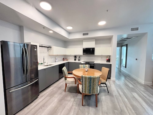 ハリウッドに位置するこのアパートスタイルホテルは、パラマウント スタジオおよびハリウッド ブールバードから 2 km 圏内です。ハリウッド ウォーク オブ フェーム (名所)まで 2.5 km です。 地下鉄 ハリウッド - ウェスタン駅まで徒歩わずか 29 分です。 コンシェルジュ サービスのほか、この禁煙のアパートスタイルホテルにはランドリー設備およびセルフパーキング (無料)があります。 各客室では、冷蔵庫とオーブン、コンロ、食器洗い機が備わったキッチンをご利用いただけます。エンターテインメント設備として、衛星放送付きのスマートテレビがあるほか、便利な洗濯機 / 乾燥機、ダイニング スペースもご利用いただけます。