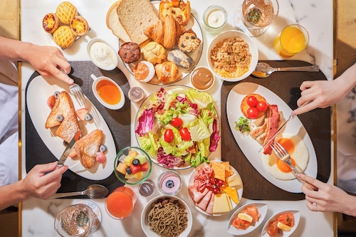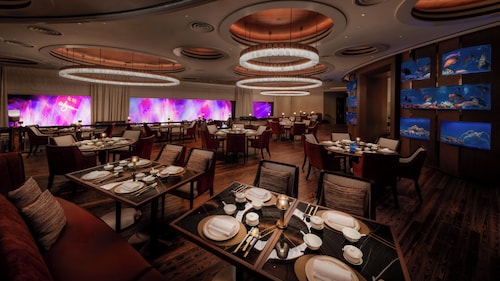 ホテルゲストは、中庭にトロピカルムード満点の屋外スイミングプール、最新機器の揃ったフィットネスを利用できる。館内には欧米ラグジュアリーブランド店が軒を連ねるショッピングアーケード、ミシュランガイドで星を獲得しているレストランをはじめとした複数のレストラン、カフェ、バーも揃う。ホテル前の「パフォーマンスレイク」では無料の噴水ショーを夕方から深夜まで15分おきに開催しており、これを部屋から望めるレイクビュータイプの客室が人気。