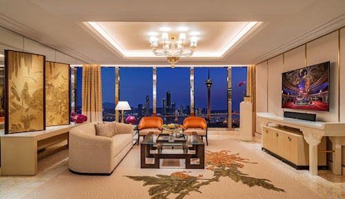 ホテル周辺は多数のカジノリゾートが建ち並ぶ賑やかなエリア。オフィス街の皇朝エリア、世界遺産観光の拠点となるセナド広場も徒歩圏内。リゾートとフェリーターミナルや中国ボーダー、空港を結ぶ無料シャトルバスサービスも充実。