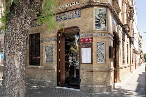 トリアナに位置するこの高級ホテルは、トリアナ陶磁器センターおよびマリネロス チャペルから徒歩 15 分圏内です。黄金の塔およびセビリア大聖堂も 2 km 圏内です。プラサ・デ・クーバ駅まで徒歩 14 分、プラサ・ヌエバ・トラム停留所まで徒歩 21 分です。 この禁煙のホテルには、屋外プール、レストラン、およびバー / ラウンジがあります。共用エリアでの WiFiは無料です。 その他の設備には、プールサイドバー、コーヒーショップ / カフェ、およびバレーパーキング (有料)があります。 タオル交換はリクエストにより行われます。