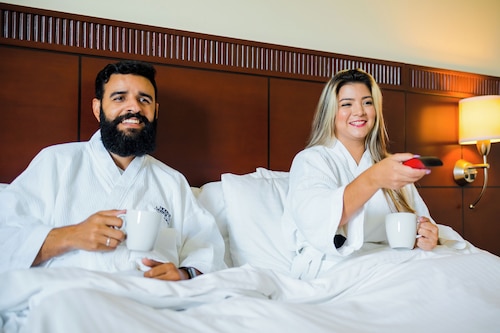 空港の近くにあるこのホテルは、ムンド アクアティコから 3.6 km、グラン テアトロ デル シバオおよびアゴラ・サンティアゴセンターから 10 km 圏内です。セントロ レオンおよび復興英雄記念碑も 10 km 圏内です。 このホテルには、屋外プール、レストラン、および24 時間営業のフィットネス施設があります。朝食ビュッフェ (無料)の他に共用エリアでの WiFi (無料)、セルフパーキング (無料)、および空港シャトルサービス (無料)をご利用いただけます。その他の設備には、バー / ラウンジ、24 時間対応ビジネスセンター、およびビジネスセンターがあります。