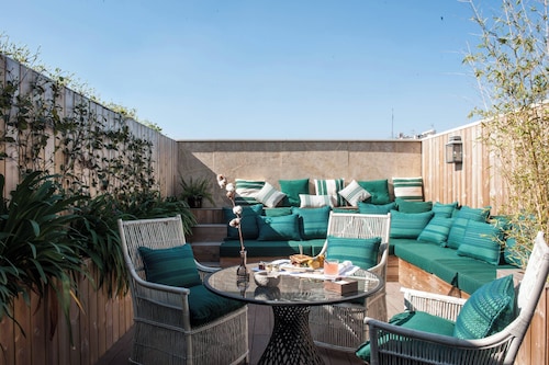バルセロナの街の歴史と切っても切り離せない繊維工業。その繊維工業で栄えたブルジョア階級が建てた豪邸で、後にバルセロナ綿産業協会の本部となった、街の歴史にとって重要な建築物を改築したホテル。2015年にオープンしたばかりで人気急上昇のラグジュアリーホテルです。昔のまま残る床や建物のあらゆる部分に使われた大理石などゴージャスな面を残しつつ、部屋はモダンでシンプルで使いやすい。1957年に作られた渦巻貝のような階段がホテルのシンボルになっています。夏にはプールがオープンする屋上からはサグラダ・ファミリアが臨めます。街の目抜き通りパセジ・デ・グラシア通りから徒歩5分と立地条件も抜群。ホテルは全83部屋で、全部屋Wi-Fi無料。大半の部屋がバスタブ付き。部屋の広さはカテゴリーによって異なり、23平方メートルから90平方メートルまで。全室に金庫、バスローブ、スリッパ、歯ブラシ、アメニティ(シャンプー、コンディショナー、シャワージェル)が付く。アメニティは、ORTIGIAというイタリアのブランドのもの。またカフェを併設するテラス、図書館、スポーツジム、街の情報をくまなく教えてくれるコンセルジュサービスを擁する。さらには