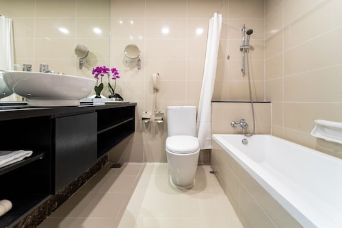 お部屋もロビーも綺麗なので過ごしやすそうでした。日本のビジネスホテルに毛が生えたような造りなので、「豪華絢爛」な内装ではないけれど、外国人の老夫婦も訪れていたり、幅広い年齢に対応できるホテルだと思いました。MRTのブラスバザー駅から徒歩1分と近く、ブギス駅も2番のバスで4分(2ストップ)と近いです。マリーナベイサンズ側にも、オーチャード側にも、アラブストリート側にも行きやすい「ハブ」のような位置にあるのでとても便利です。大通りからちょっと入った場所にあるので、夜はあまりうるさくなさそうです。客室は入った瞬間「狭いなぁ」と正直思いました。料金からいえば妥当らしいですが、比較的大きめのお部屋だそうです。エグゼクティブルームだったのですが、大きなトランクを広げたら通路が埋まってしまうくらいの大きさでした。NHKのプレミアムは視聴可能なので、日本語もOKです!バスルームはバスタブがついています!8部屋はシャワーのみのようですが、日本人には嬉しいポイントです!もちろん、ビジネスホテル並みの大きさなのであまりゆったり・・・ではありませんが、身体の大きなヨーロッパのお客様も普通に滞在していただけているそうです。洗面所は