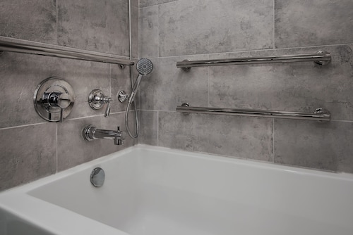 ディズニー・コンテンポラリー・リゾートは、モノレールが建物内を通り抜ける、ディズニー直営ホテルの中でも珍しい高層タイプの近代的な外観のホテルで、デラックス/モデレート/バリューの3段階のうち、最上級のデラックスホテルです。4階部分にモノレール乗り場、レストラン、ギフトショップ、ゲームセンターなどがあり、5~15階が客室になっています。スタンダードルームは、モノトーンとグリーンのインテリアでスタイリッシュな雰囲気で、クイーンベッド2台とプルダウンベッド(ソファの背を引っ張るとシングルベッドになる)が1台あり、最大5名まで宿泊が可能です。メインビルディングのお部屋からの眺めは、ウォータービューとマジックキングダムを臨めるテーマパークビューがあり、どちらもお部屋の造りは同じです。このホテルとポリネシアン・ビレッジ・リゾートは1971年のディズニーワールド創業当時からあるホテルなので、他のデラックスリゾートよりもお部屋が少し広い造りになっているそうです。ホテル自体はリノベーションされていて、新しくきれいなので安心してくださいね!アメニティはディズニーオリジナルのシャンプー、コンディショナー、バスジェル、ボディロー