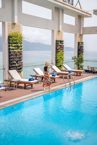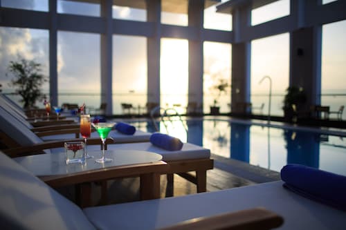 屋上のプールバーは夜行くとダナン市内の夜景も見られ、なかなかの雰囲気。最近のルーフトップバーはクラブのような音楽を流していることが多いですがこちらは落ち着いています。