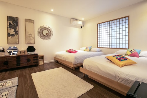 ホンデに位置するこのゲストハウスは、弘大 通りおよび弘益大学校から徒歩 10 分圏内です。YG エンターテインメント ビルディングおよび延世大学も 2 km 圏内です。地下鉄 弘大入口駅まで徒歩 7 分、地下鉄 望遠駅まで徒歩 11 分です。 共用エリアの電子レンジのほか、この禁煙のゲストハウスには共用リビングルームおよび共用エリアでの WiFi (無料)があります。