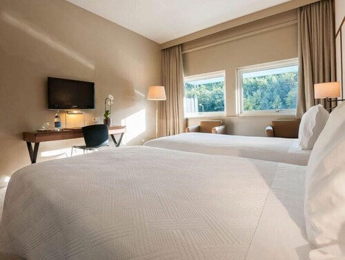 ギマランイス中心部に位置するこのスパ付きホテルは、ギマラエス ショッピング モール、セントロ・インテルナシオナル・ダス・アルテス・ジョゼ・ギマランイス、プラタフォルマ・ダス・アルテス・エ・ダ・クリアティビダーデから徒歩 15 分圏内です。イグレジャ・デ・サン・フランシスコおよびオリヴェイラ広場も 15 分圏内です。ギマランイス駅まで徒歩わずか 4 分、コーヴァス駅まで徒歩 24 分です。 フルサービス スパ、屋内プール、およびレストランがある禁煙のホテルです。共用エリアでの WiFi (無料)および セルフパーキング (無料)もご利用いただけます。その他に、敷地内にはフィットネスクラブ (スタッフ常駐)、バー / ラウンジ、およびサウナがあります。