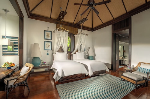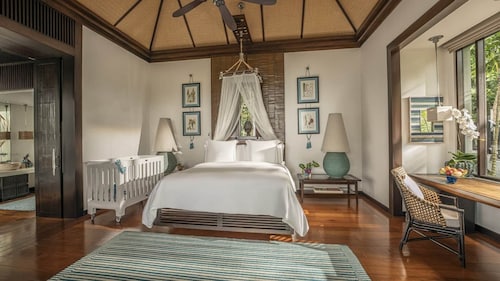客室は、全てのお部屋がプライベートプールを備えたヴィラタイプ。一番リーズナブルな1ベッドルームヴィラでも103 ㎥の広さ。ファミリーで利用できるファミリービラや、ハネムーナーに人気のビーチフロントヴィラなど、全6カテゴリーが用意され、どのお部屋からも、美しいシービューが楽しめます。