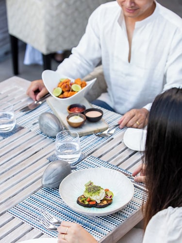 飲食施設も充実していて、昼間はビーチサイドレストラン「PLALA」で青い海を見ながらのランチを、夕暮れ時には、クリフトップラウンジ「KOH BAR」のまるで空中に浮いたようなデッキから、素晴らしいサンセットを楽しめます。