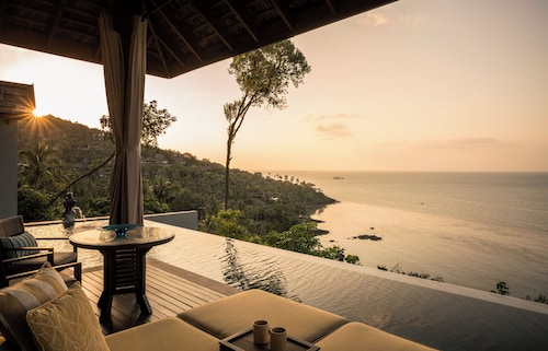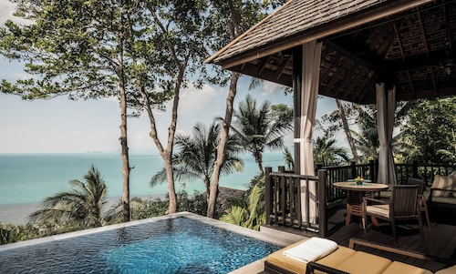 フォーシーズンズ コ サムイは、サムイ島の北西の角、レムヤイ岬の突端に建てられた、ラグジュアリーリゾート。小さなプライベートビーチを囲む斜面にヴィラタイプのお部屋が間隔をおいて建てられています。