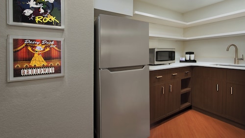 簡易キッチンがあり、冷蔵庫、電子レンジ、コーヒーメーカーが完備されています。テーブルとイスもあるので、お部屋で簡単な食事をすることもできます!