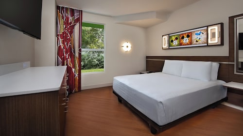 デラックス/モデレート/バリューの3段階からなる直営ホテルのうち、リーズナブルに泊まれるバリュークラスのディズニー・オールスター・リゾートには、ミュージック、ムービー、スポーツの3つのリゾートがあり、各々テーマに沿った建物のデザインやインテリア、オブジェなどが楽しめます。