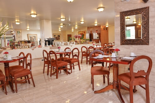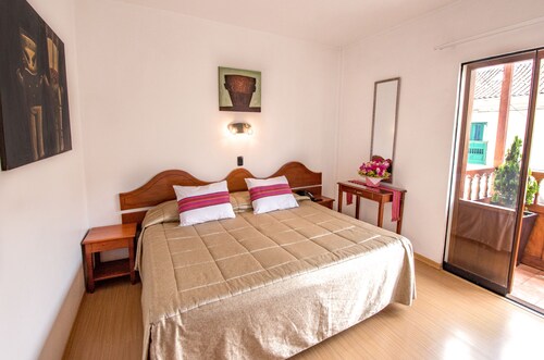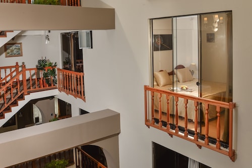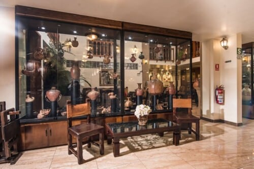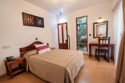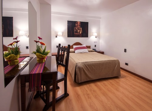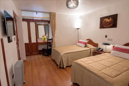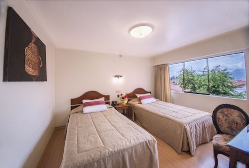 クスコのアルマス広場から坂を上ることもなく3ブロックで、周辺には人気レストランやバーがたくさんあります。前の通は車両通行にが問題なく、送迎の車などは玄関に横付けできます。全34室(シングル2室、ツインもしくはダブル23室、トリプル7室、スイートルーム2室)にバスタブがついています。小規模なホテルで落ち着いた内装と真ん中の吹き抜けのロビーが特徴的で、吹抜けを眺められる階段が面白い。全室禁煙ですが、バルコニーのある部屋ではバルコニーに出て喫煙が可能ということです。喫煙される方は予約時にバルコニーのある部屋がとれるか確認しましょう。こじんまりとしてホテル内で部屋まで歩く距離が短いというのも楽。朝食は4時45分から9時まで。チェックイン 午前10時 チェックアウト 午前9時。
