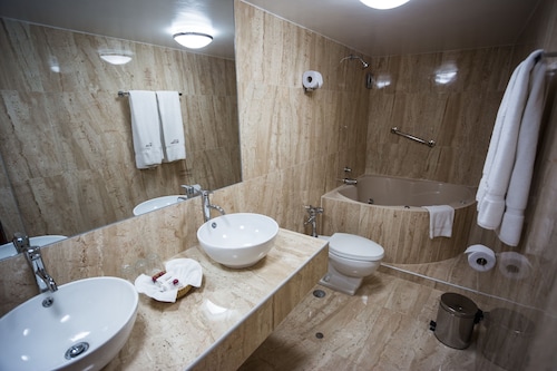 前の通は車両通行にが問題なく、送迎の車などは玄関に横付けできます。全34室(シングル2室、ツインもしくはダブル23室、トリプル7室、スイートルーム2室)にバスタブがついています。