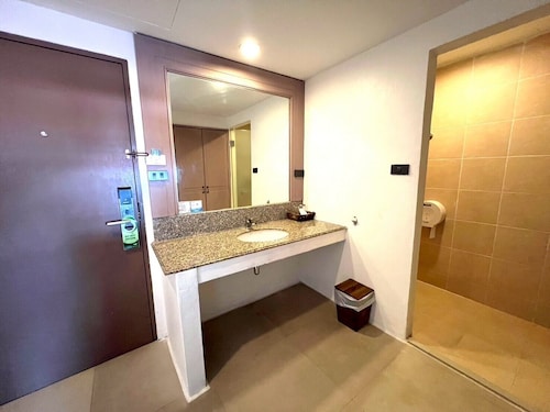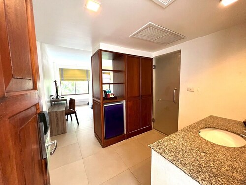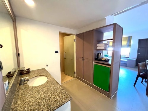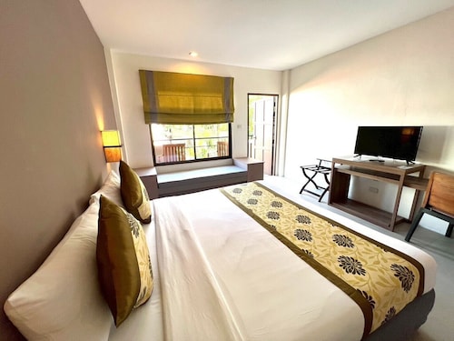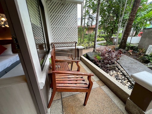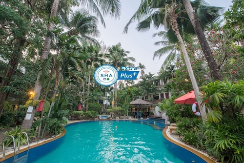 This resort is conveniently located in Patong Beach, surrounded by entertainment spots and shopping centres. The nearest bus station is a 10-minute drive away, Phuket Airport is about 27 km away and Phuket itself is about 55 km away. The resort complex enjoys a magnificent setting surrounded by beautiful scenery. Opened in 2006 and fully air-conditioned, it has a hotel safe, bar and restaurant. Parking facilities, room and laundry services are also available. The standard rooms are built in an embraced natural concept with a private terrace or balcony facing the swimming pool and gardens. All rooms feature individually adjustable air conditioning, a private bathroom with shower and telephone, as well as cable TV and a fully stocked minibar. The resort provides an outdoor swimming pool with children's wading pools, adjoined by a hot tub, sauna room and pool bar. Guests may take advantage of massage treatments and room service.