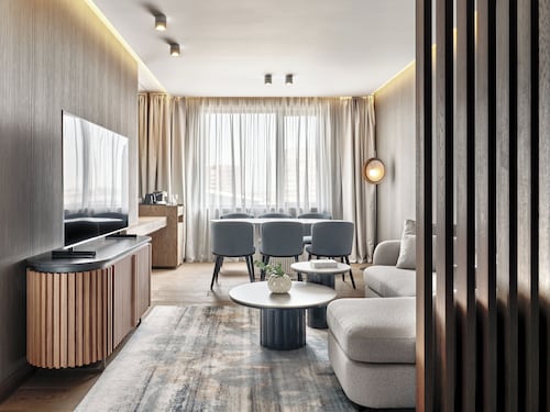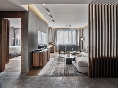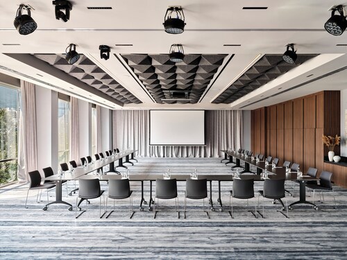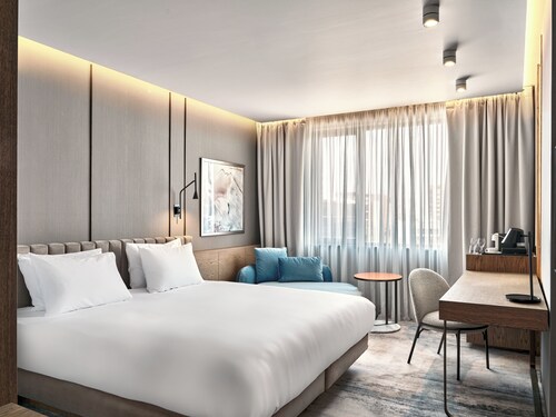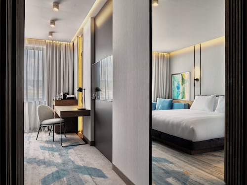 ムラドストに位置するこの高級ホテルは、ソフィア リング モールから 2 km、国際展覧会議センターから 4.3 km です。 アリーナ アルメーツおよびソフィア動物園も 10 km 圏内です。地下鉄 ビジネス パーク駅まで徒歩わずか 8 分です。 このホテルには、2 か所のレストラン、フルサービス スパ、および屋内プールがあります。共用エリアでの WiFi (無料)および セルフパーキング (無料)もご利用いただけます。その他に、敷地内にはフィットネスセンター、バー / ラウンジ、およびサウナがあります。
