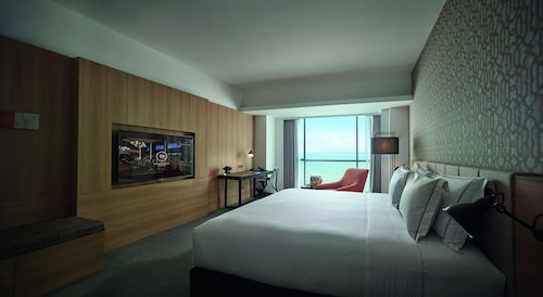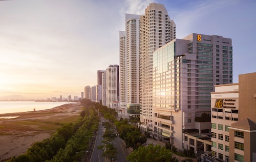 Gホテルは、ガーニー地区の海岸沿いに建つスタイリッシュなデラックスホテルです。広々としたロビーにはバーカウンターがあり、夜になると多くの人々に賑わっています。客室312の大型ホテルです。スタンダードルームで38㎡、スーペリアルーム・デラックスルームなら47㎡~55㎡とかなり広めです。白を基調とした清潔感のあるすっきりとしたデザインで、落ち着いて過ごすことができます。バスタブはなく、シャワーオンリーです。ホテルの両隣は、「プラザ・ガーニー」「ガーニー・パラゴン・モール」という大型の商業施設です。買い物はもちろん、レストランやフードコートもたくさん入っていますので食事には困りません。有名な屋台街の「ガーニードライブ」へも徒歩2分程度です。ガーニー地区は、世界遺産ジョージタウンとビーチリゾート地区の間に位置しており、バスやタクシーでどちらにも出て行きやすい立地ですので、観光でもビジネスでも便利なロケーションです。ホテル前の海岸はビーチではありませんので、リゾートホテルという感じではありません。どちらかというとハイセンスなシティーホテルというイメージで、ビジネス客やホテルライフを楽しみながら観光も満喫したいという