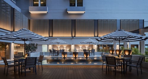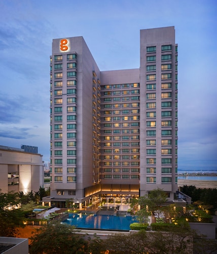 Gホテルは、ガーニー地区の海岸沿いに建つスタイリッシュなデラックスホテルです。広々としたロビーにはバーカウンターがあり、夜になると多くの人々に賑わっています。