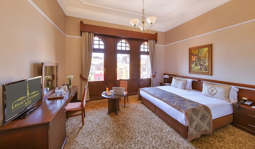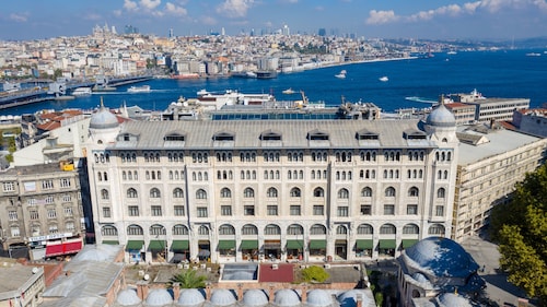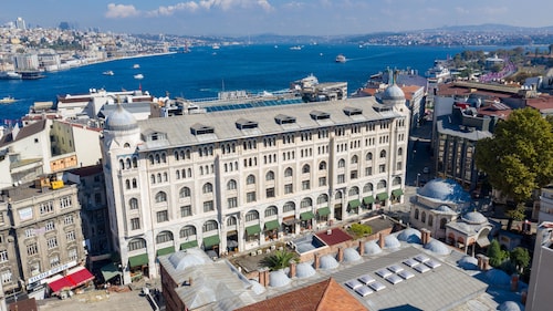 旧市街エミノニュ地区に位置するLegacy Ottoman Hotel。トラムのシルケジ駅から徒歩数分で、ブルーモスクやアヤソフィアまでも約15分と徒歩圏内にあります。トラムも通っているので、トラムに乗ってもOK!この建物はバルカン戦争、第一次世界大戦にオスマン帝国が参戦したため、1916年に建設が開始されてから10年の時を経て完成され、長年にわたってイスタンブールの証券取引所とバンカーとして使用されていました。その歴史的な建物を現在ホテルとして利用しています。改装されたロビーは以前よりも更に洗練された豪華な家具が置かれ、ロビー全体が明るい雰囲気に。レセプションからホテルを見ると、ヨーロッパの街中に建つマンションのような作りになっています。お部屋はオスマン帝国時代を彷彿させる絵画が飾られており、シックでクラシックな内装です。バスルームはバスタブがないお部屋もあります。朝食のレストランからは目の前にボスポラス海峡、金角湾、市街の景色が広がり、朝から美しい景色を見て、素敵な一日になること間違いなし!ホテルに併設しているハマムは他のホテルを比べとても広々した作りで、ゆったりと旅の疲れを癒してくれる最高のリラクゼ