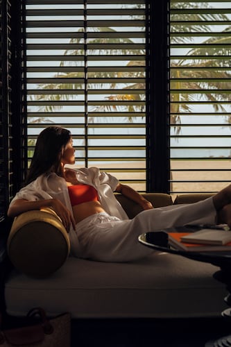 ヴィラの大きな窓からは、美しいビーチを見渡せる開放的な造り。