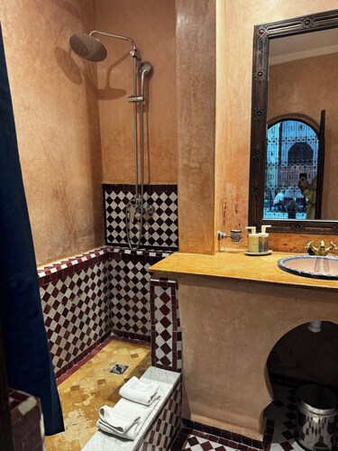 フェズ エル バリに位置するこのスパ付きゲストハウスは、カッスル・アンヌジューム・ドゥッチ財団、ダールバサ博物館、ブー・イナニア・マドラサから徒歩 5 分圏内です。 水時計およびブルー ゲートも徒歩 10 分歩圏内です。 禁煙のこのゲストハウスには、2 か所のレストラン、フルサービス スパ、およびフィットネスセンターが備わっています。コンチネンタル ブレックファスト (無料)、共用エリアでの WiFi (無料)、およびマネジャー主催のレセプション (無料)もご利用いただけます。 その他の設備には、ルーフトップテラス、コーヒーショップ / カフェ、および共用エリアでのコーヒー / ティーサービスがあります。