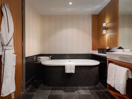 ホテルは全室バルコニー付きで窓も大きく開放感たっぷり。面積35㎡のスーペリア、35~45㎡のラグジュアリー、52㎡のスイートというカテゴリがありますが、すべてにレインシャワーとバスタブが完備していて旅の疲れも癒せます。ソフィテルオリジナルの寝心地がいいMy Bed、ボーズ製のウェーブラジオ、Wi-Fi(有料)といった快適に過ごせる工夫が施されています。
