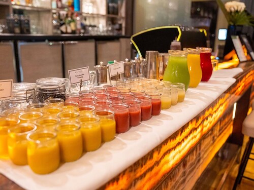 館内にはモダンフレンチの「ラヴァダイニング」、カジュアルな「21ヴァイアダクトカフェ」、フランスらしくサーベルでシャンパンの蓋を開けるパフォーマンスを披露してくれる「サブラージュバー」という異なるタイプのグルメスポットが3つあります。メインレストランの「ラヴァダイニング」には地元の有名シェフ、セバスチャン・ヒンドリヒスがエグゼクティブシェフとして就任したばかり。極上のディナーはもちろん、朝はシャンパンブレックファストも楽しめ、フランスから空輸した本場のペストリーも並びます。
