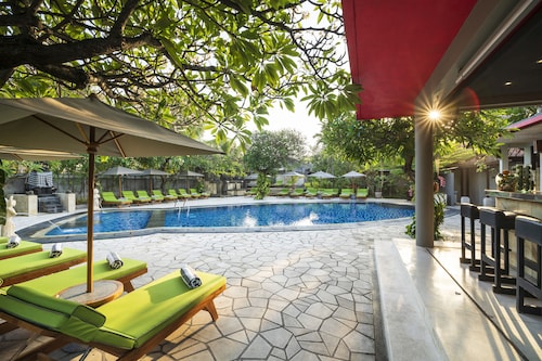 【Wi-Fi全館無料】 クタビーチ沿いのパンタイクタ通りに立地するリゾート。ビーチも目の前で、立地抜群です。 ホテル内レストランのRossovivo Dine & Loungeはビーチフロントのイタリアンレストランで、宿泊者以外も多く訪れ、周囲でも随一の賑わいです。 ※ニュピ(2026/3/19)はチェックイン及びチェックアウトができません。