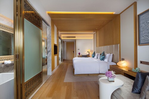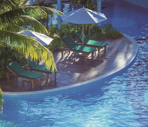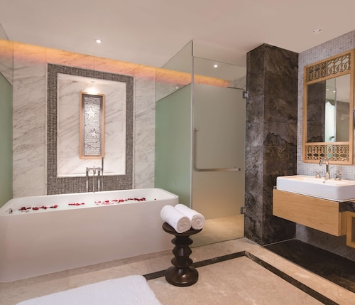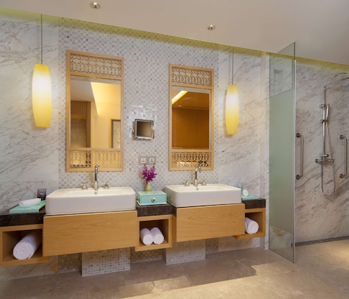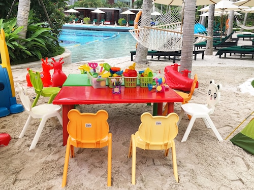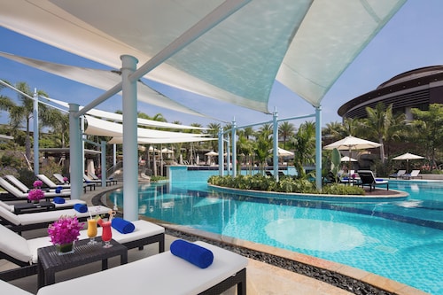 【Wi-Fi全館無料】 三亜凤凰国際空港から約25分、三亜のダウンタウンから35km、南山寺、観音像、三十三観音堂から約15km圏内、天涯海角、椰夢長廊から約32km圏内に位置するホテルです。 全266室の客屋には、バスローブ、冷蔵庫、コーヒー メーカー、液晶テレビ(ケーブル放送付き)が備わっています。 ホテルには、5軒のレストラン、屋外プール、フィットネスセンター、セルフパーキング、バー / ラウンジ、プールサイドバーをご利用いただけます。