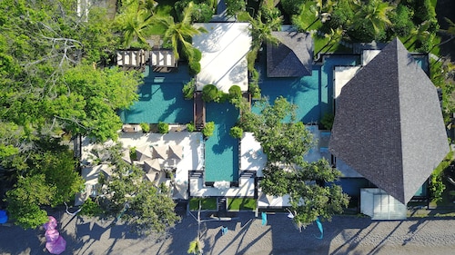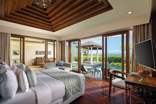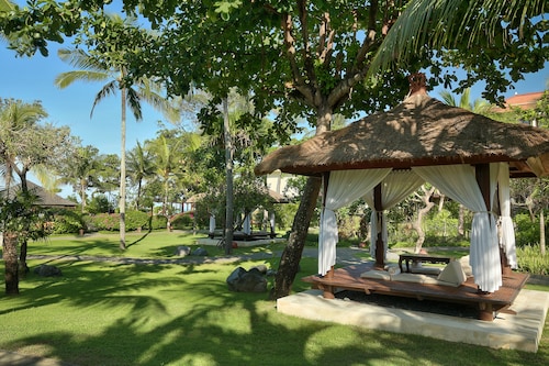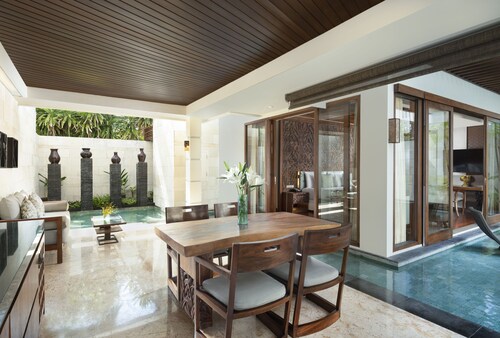 【Wi-Fi全館無料】 スミニャックのオンザビーチに位置する全103室のホテルとヴィラです。コンセプトはトラディショナルバリニーズラグジュアリー。ホテル敷地はガーデンウィングとビーチウィングに分かれていて、ビーチンウィングにある全てのお部屋は、ビーチから近い場所にあります。ガーデンウィングは、ビーチウィングから道路を隔てた向かい側にあります(ビーチの反対側)。ビーチウイングの一部のお部屋とヴィラは、ビーチへ直ぐ出る事が出来るビーチアクセスとなっています。お勧めはオーシャンビューヴィラ。ヴィラからたっぷり海を眺めることができて、プールも広く、ハネムーナーによく選ばれています。 ※ニュピ(2026/3/19)はチェックイン及びチェックアウトができません。