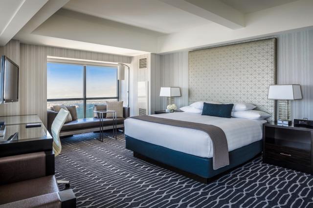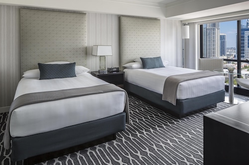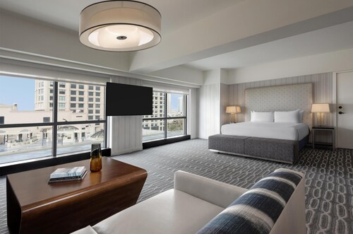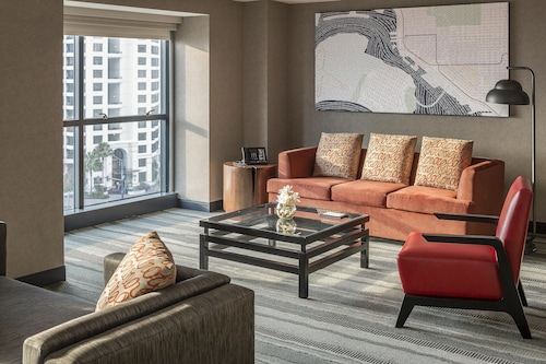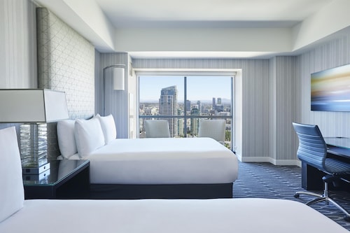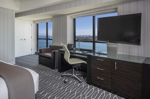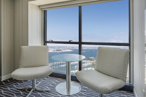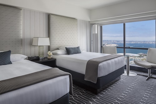 シーポートビレッジまで徒歩3秒という好立地!コンベンションセンターまでも徒歩5分で道路の向かい側(Harbor Drive)を約15分歩けばガスランプクウォーター!ダウンタウンのどこにいても高層ホテルでツインタワーなので一際目立つホテル。