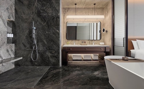 南岸に位置するこの高級ホテルは、解放碑歩行街、重慶オリンピック スポーツ センター、人民大礼堂から 10 km 圏内です。洪崖洞および人民開放記念碑も 10 km 圏内です。工貿駅まで徒歩 13 分、地下鉄 南平駅まで徒歩 17 分です。 2 か所のレストランのほか、この禁煙のホテルには屋内プールおよび24 時間営業のフィットネス施設があります。共用エリアでの WiFiは無料です。 その他の設備には、バー / ラウンジ、コーヒーショップ / カフェ、および共用エリアでのコーヒー / ティーサービスがあります。 タオル交換はリクエストにより行われます。