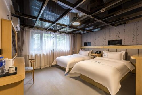 北京市にある德全酒店朝阳高铁站石佛营地铁站店は雍和宮から9km以内、什刹海地区から10km以内で、エアコン完備のお部屋(専用バスルーム付)を提供しています。王府井から10km、紫禁城から11km、天安門広場から12kmの宿泊施設です。ルームサービス、24時間対応のフロント、ツアーの手配サービスを提供しています。 德全酒店朝阳高铁站石佛营地铁站店のお部屋にはデスク、薄型テレビ、専用バスルーム、ベッドリネン、タオルが備わります。それぞれのお部屋に電子レンジが備わります。 この宿泊施設から前門大街まで13km、天壇まで13kmです。北京首都国際空港まで19kmです。